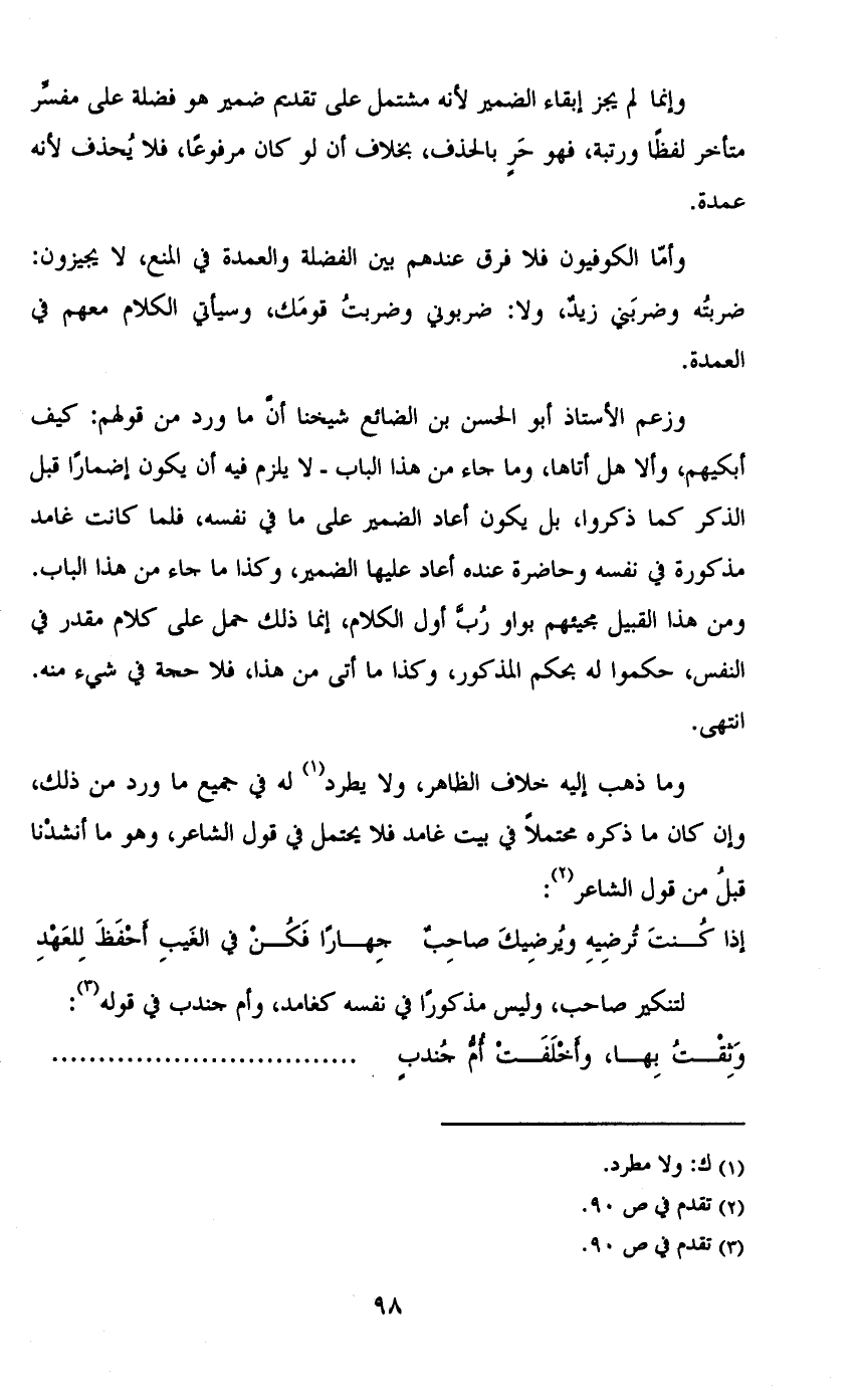 وما ذهب إليه خلاف الظاهر، ولا يطرد له في جميع ما ورد من ذلك، وإن كان ما ذكره محتملاً في بيت غامد فلا يحتمل في قول الشاعر، وهو ما أنشدنا قبل من قول الشاعر: