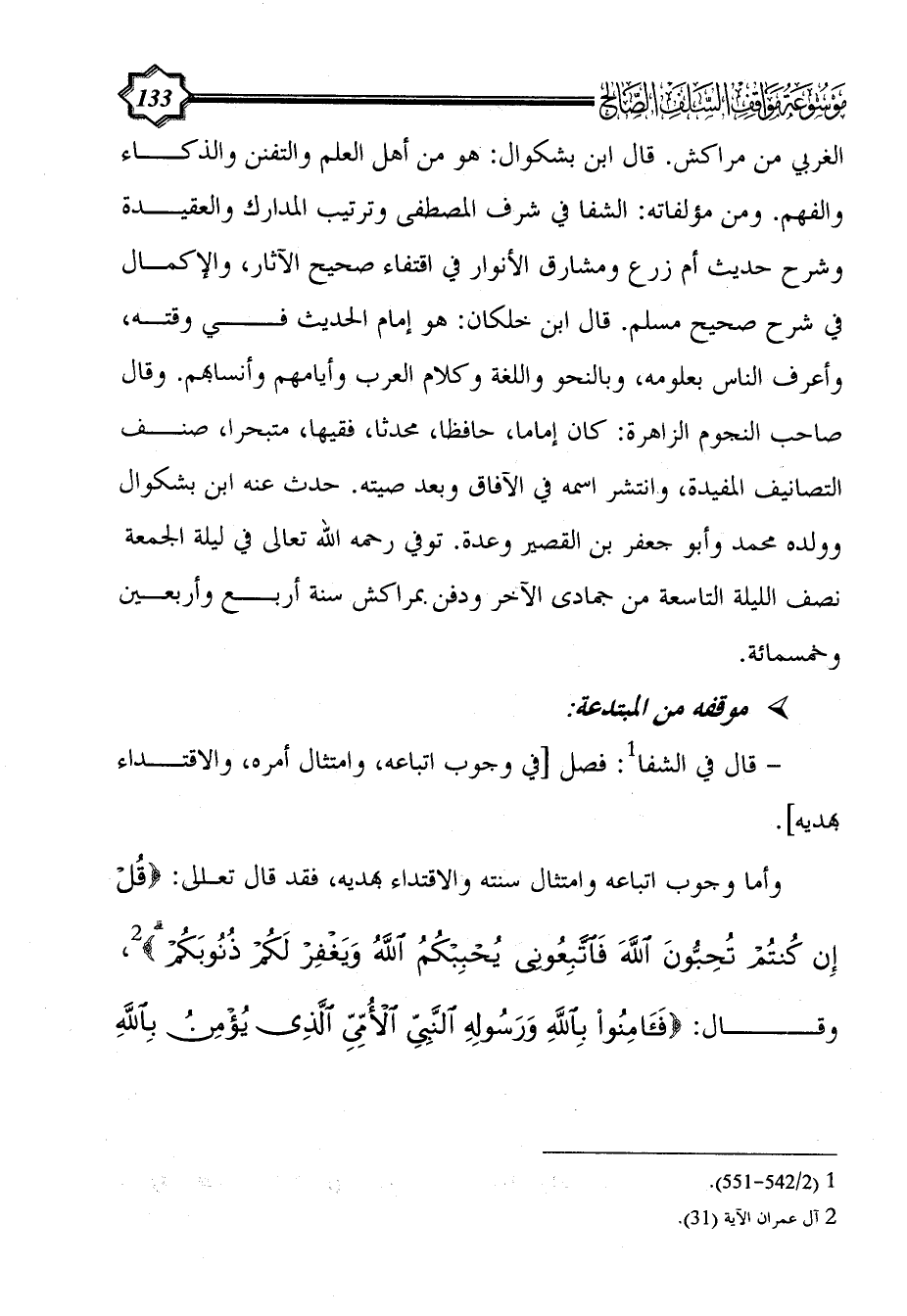 - قال في الشفا (¬1): فصل [في وجوب اتباعه، وامتثال أمره، والاقتداء بهديه].