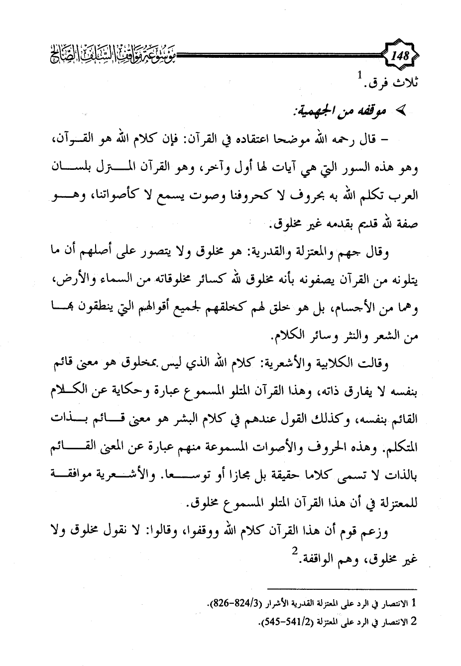 وزعم قوم أن هذا القرآن كلام الله ووقفوا، وقالوا: لا نقول مخلوق ولا غير مخلوق، وهم الواقفة. (¬2)