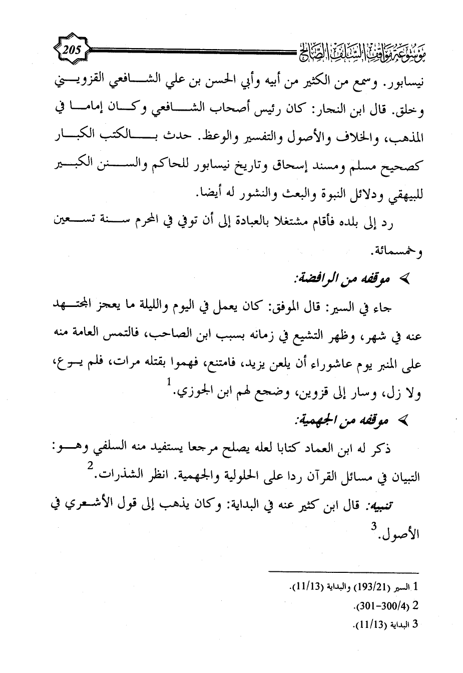 تنبيه: قال ابن كثير عنه في البداية: وكان يذهب إلى قول الأشعري في الأصول. (¬3)