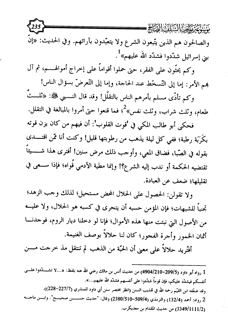 (¬1) رواه أبو داود (5/ 209 - 210/ 4904) من حديث أنس بن مالك رضي الله عنه بلفظ: « ... لا تشدّدوا على أنفسكم فيشدّد عليكم، فإن قوماً شدّدوا على أنفسهم فشدّد الله عليهم ... ».