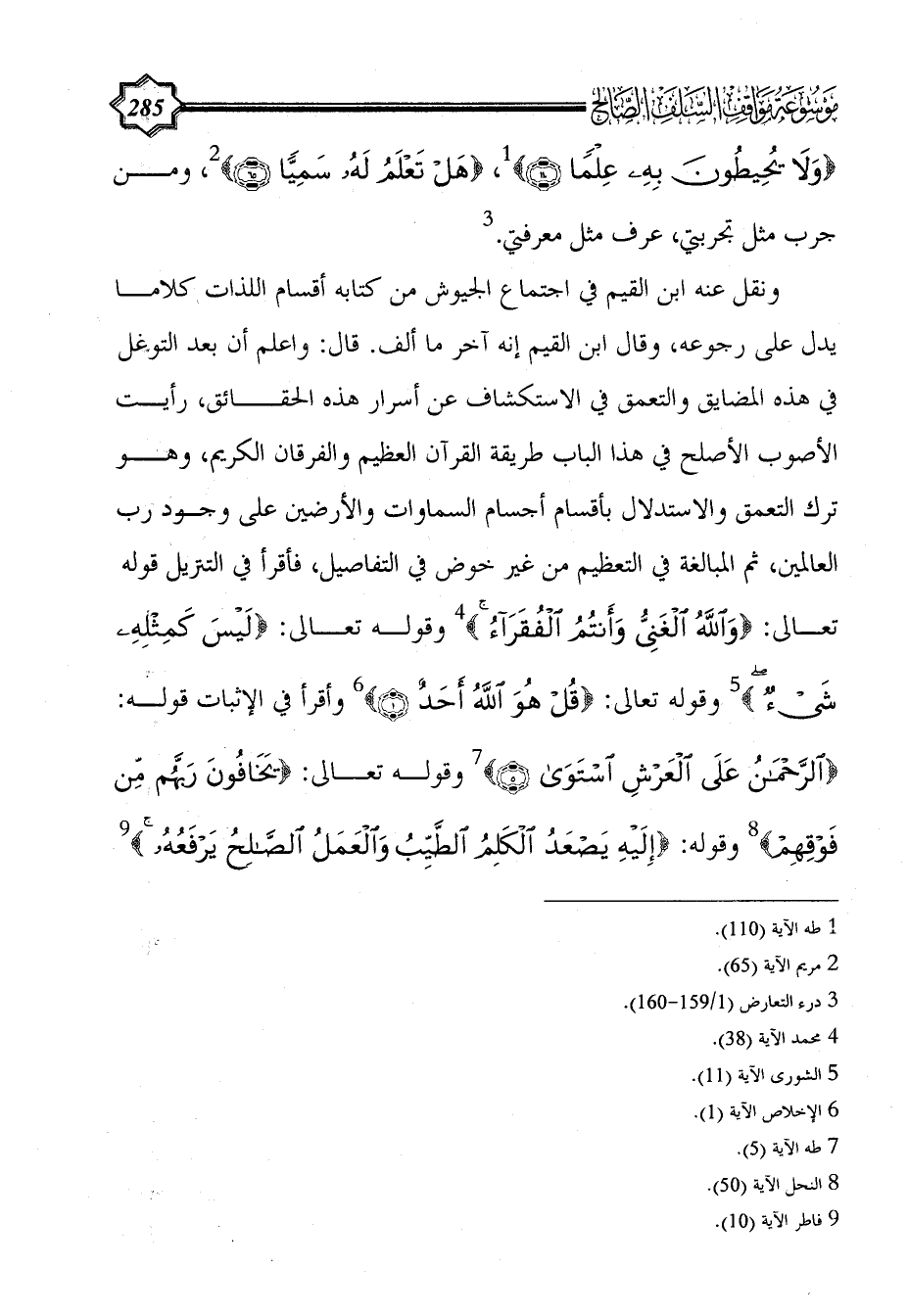 {وَلَا يُحِيطُونَ بِهِ عِلْمًا (110)} (¬1)، {هَلْ تَعْلَمُ لَهُ سَمِيًّا (65)} (¬2)، ومن جرب مثل تجربتي، عرف مثل معرفتي. (¬3)