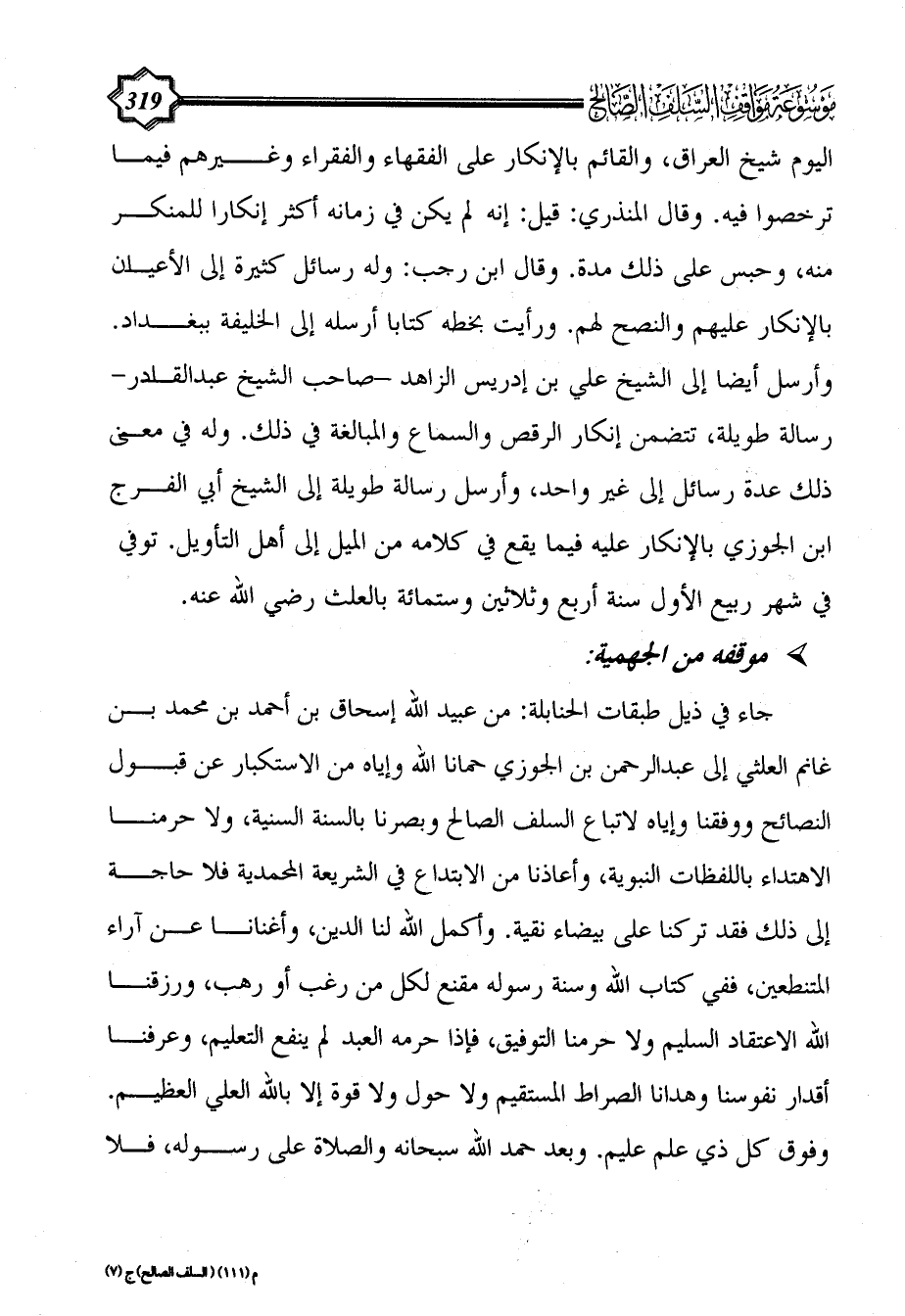 كتاب موسوعة مواقف السلف في العقيدة والمنهج والتربية (اسم الجزء: 7)