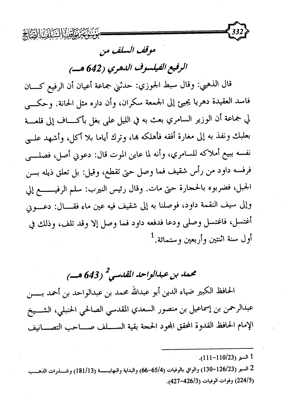 موقف السلف من الرفيع الفيلسوف الدهري (642 هـ)