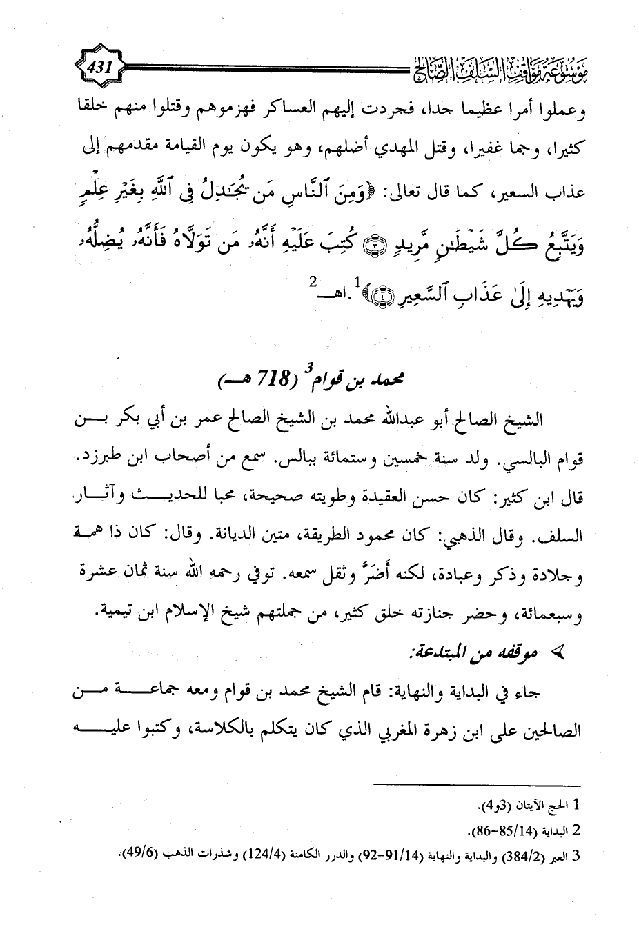 جاء في البداية والنهاية: قام الشيخ محمد بن قوام ومعه جماعة من الصالحين على ابن زهرة المغربي الذي كان يتكلم بالكلاسة، وكتبوا عليه