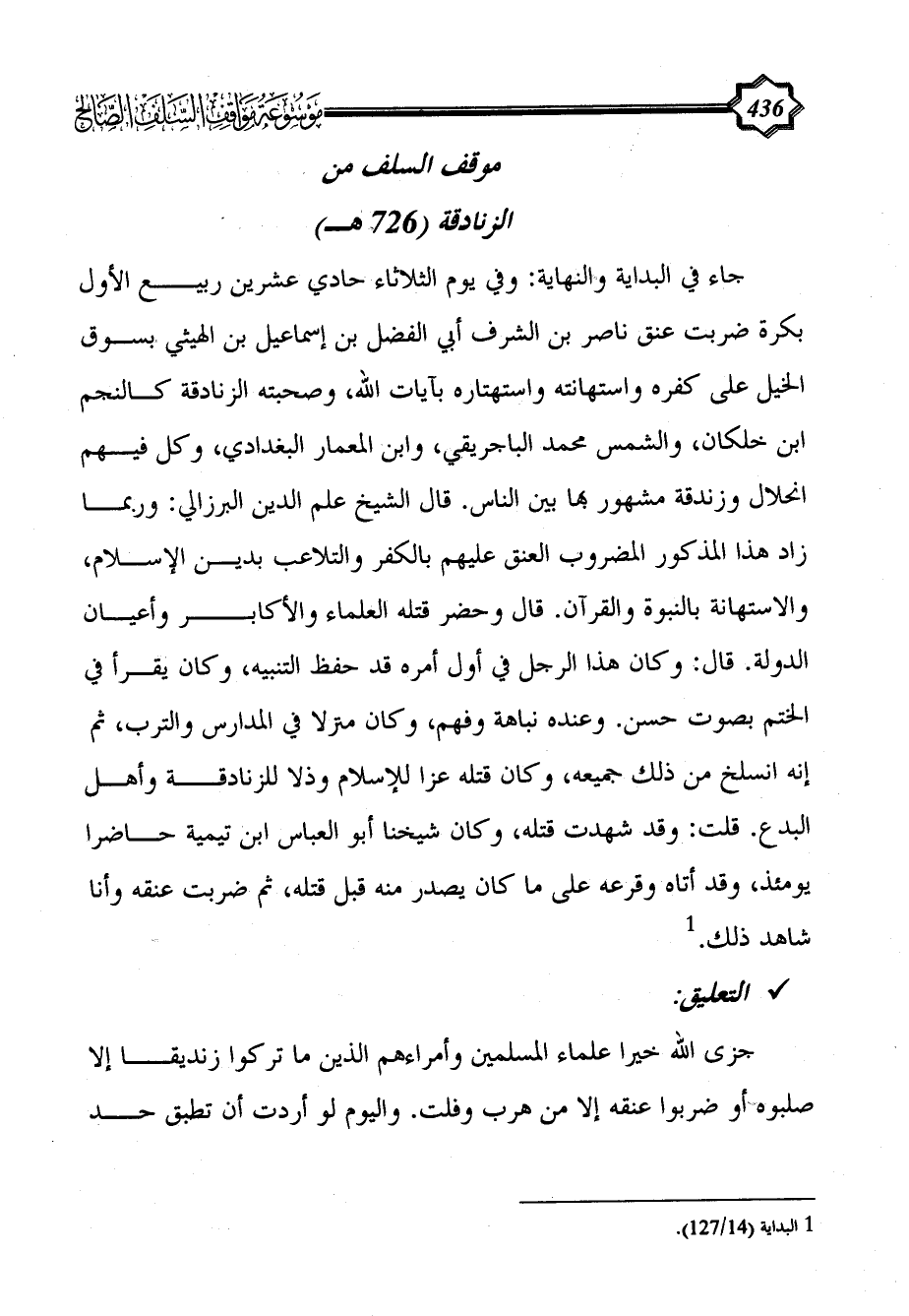 موقف السلف من الزنادقة (726 هـ)
