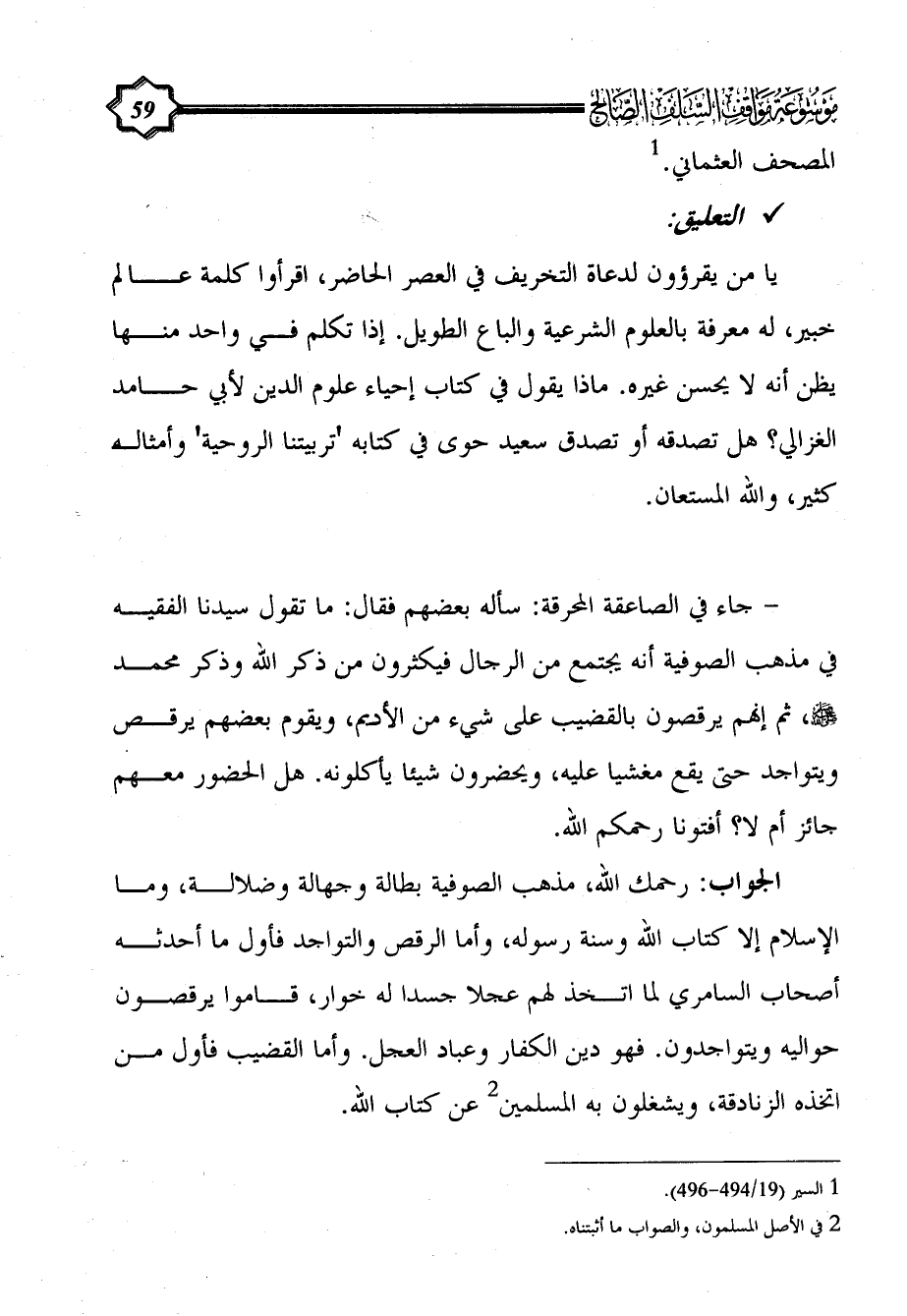 يا من يقرؤون لدعاة التخريف في العصر الحاضر، اقرأوا كلمة عالم خبير، له معرفة بالعلوم الشرعية والباع الطويل. إذا تكلم في واحد منها يظن أنه لا يحسن غيره. ماذا يقول في كتاب إحياء علوم الدين لأبي حامد الغزالي؟ هل تصدقه أو تصدق سعيد حوى في كتابه 'تربيتنا الروحية' وأمثاله كثير، والله المستعان.