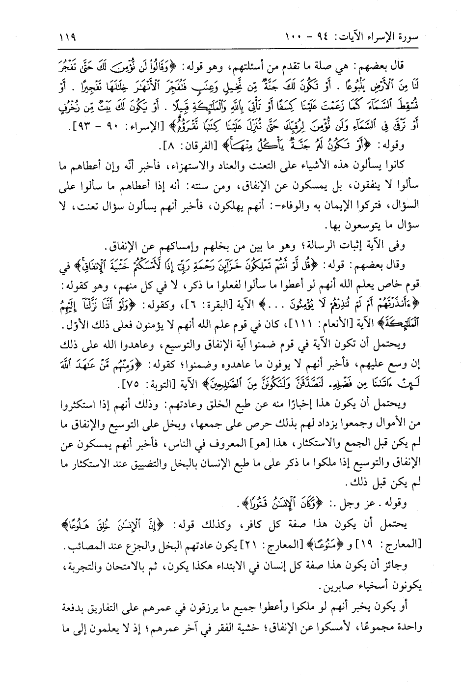 وقوله. عَزَّ وَجَلَّ: (وَكَانَ الْإِنْسَانُ قَتُورًا).