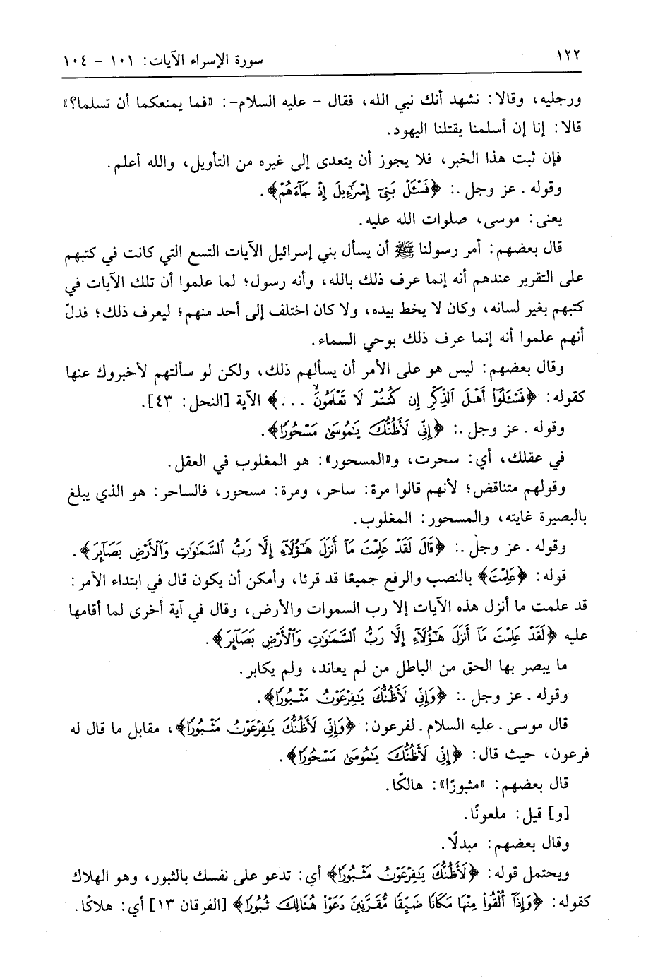 وقوله. عَزَّ وَجَلَّ -: (قَالَ لَقَدْ عَلِمْتَ مَا أَنْزَلَ هَؤُلَاءِ إِلَّا رَبُّ السَّمَاوَاتِ وَالْأَرْضِ بَصَائِرَ وَإِنِّي لَأَظُنُّكَ يَا فِرْعَوْنُ مَثْبُورًا (102)