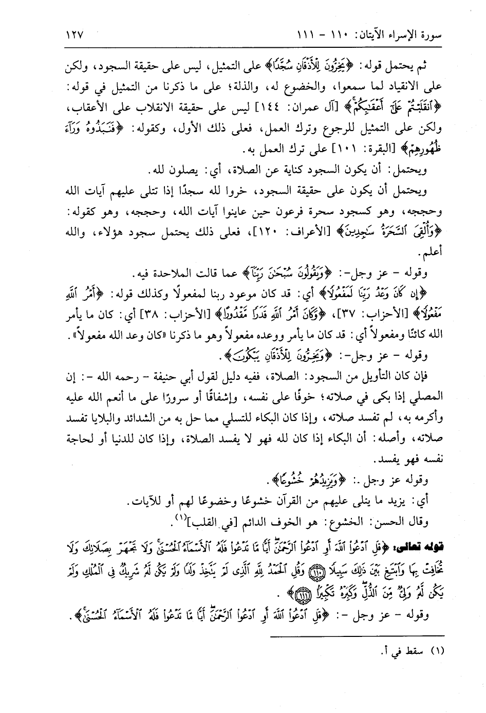 وقوله - عَزَّ وَجَلَّ -: (وَيَخِرُّونَ لِلْأَذْقَانِ يَبْكُونَ وَيَزِيدُهُمْ خُشُوعًا (109)