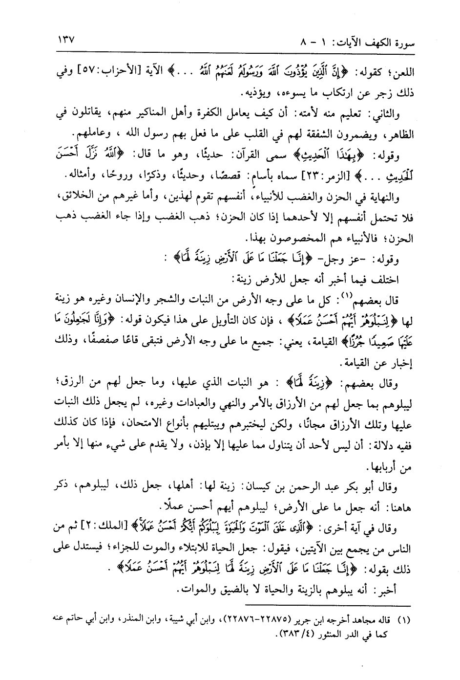 وقوله: - عَزَّ وَجَلَّ - (إِنَّا جَعَلْنَا مَا عَلَى الْأَرْضِ زِينَةً لَهَا لِنَبْلُوَهُمْ أَيُّهُمْ أَحْسَنُ عَمَلًا (7)