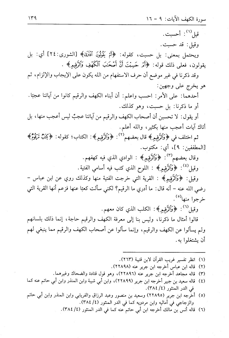 ثم اختلف في (وَالرَّقِيمِ) وقَالَ بَعْضُهُمْ: (وَالرَّقِيمِ): الكتاب؛ كقوله: (كِتَابٌ مَرْقُومٌ) أي: مكتوب.