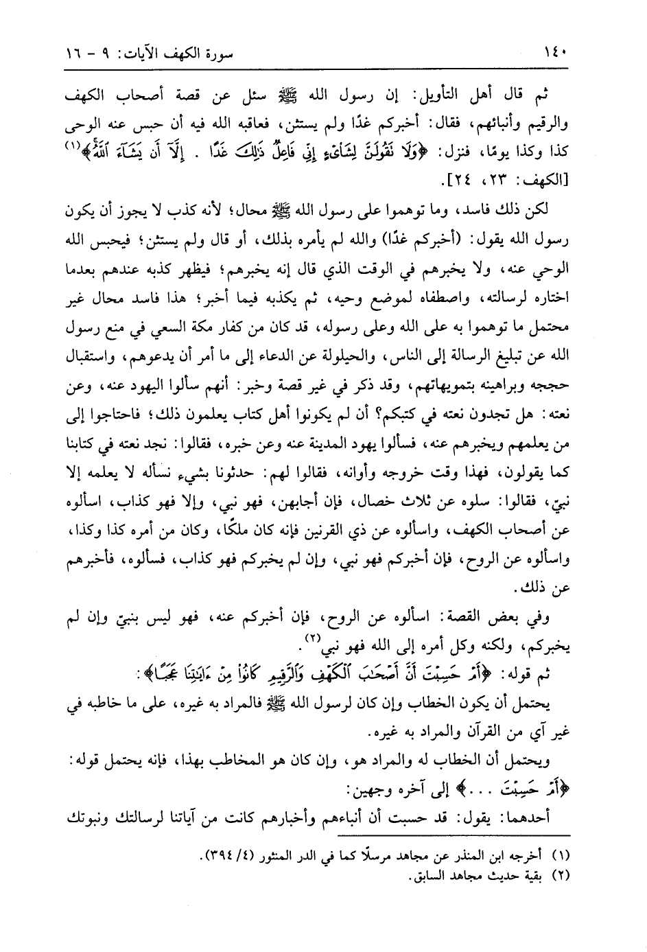 ثم قال أهل التأويل: إن رسول اللَّه - صَلَّى اللَّهُ عَلَيهِ وَسَلَّمَ - سئل عن قصة أصحاب الكهف والرقيم وأنبائهم، فقال: أخبركم غدًا ولم يستثن، فعاقبه اللَّه فيه أن حبس عنه الوحي كذا وكذا يومًا، فنزل: (وَلَا تَقُولَنَّ لِشَيْءٍ إِنِّي فَاعِلٌ ذَلِكَ غَدًا (23) إِلَّا أَنْ يَشَاءَ اللَّهُ).