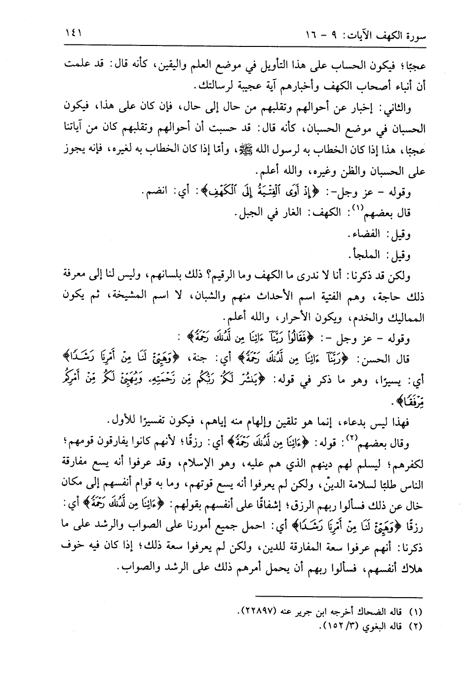 وقَالَ بَعْضُهُمْ: قوله: (آتِنَا مِنْ لَدُنْكَ رَحْمَةً) أي: رزقًا؛ لأنهم كانوا يفارقون قومهم؛ لكفرهم؛ ليسلم لهم بينهم الذي هم عليه، وهو الإسلام، وقد عرفوا أنه يسع مفارقة الناس طلبًا لسلامة الدِّين، ولكن لم يعرفوا أنه يسع قوتهم، وما به قوام أنفسهم إلى مكان خال عن ذلك فسألوا ربهم الرزق؛ إشفاقًا على أنفسهم بقولهم: (آتِنَا مِنْ لَدُنْكَ رَحْمَةً) أي: رزقًا (وَهَيِّئْ لَنَا مِنْ أَمْرِنَا رَشَدًا) أي: احمل جميع أمورنا على الصواب والرشد على ما ذكرنا: أنهم عرفوا سعة المفارقة للدِّين، ولكن لم يعرفوا سعة ذلك؛ إذا كان فيه خوف هلاك أنفسهم، فسألوا ربهم أن يحمل أمرهم ذلك على الرشد والصواب.