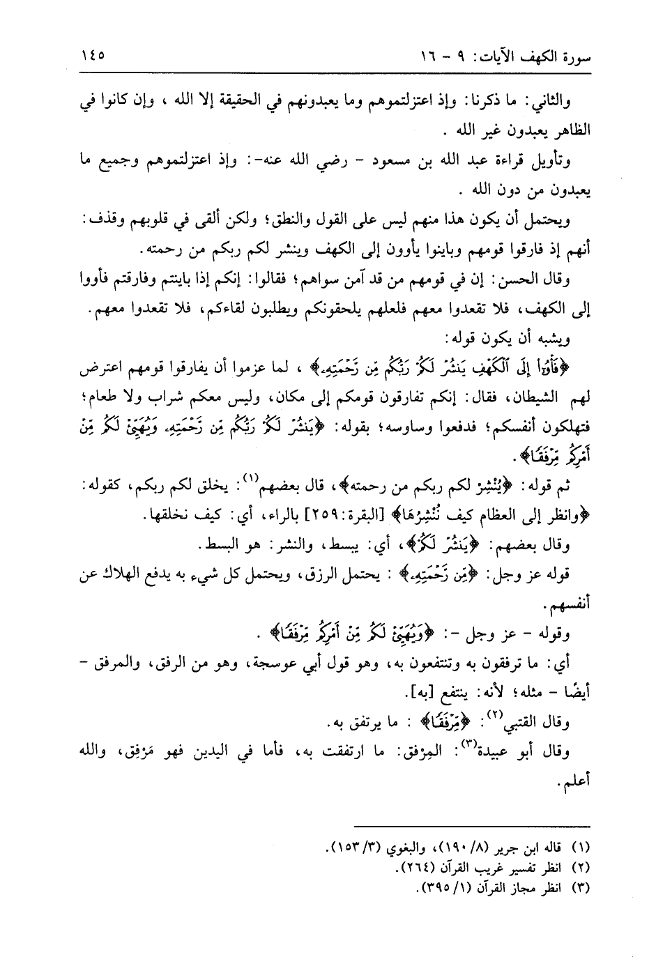 وقوله - عَزَّ وَجَلَّ -: (وَيُهَيِّئْ لَكُمْ مِنْ أَمْرِكُمْ مِرْفَقًا).