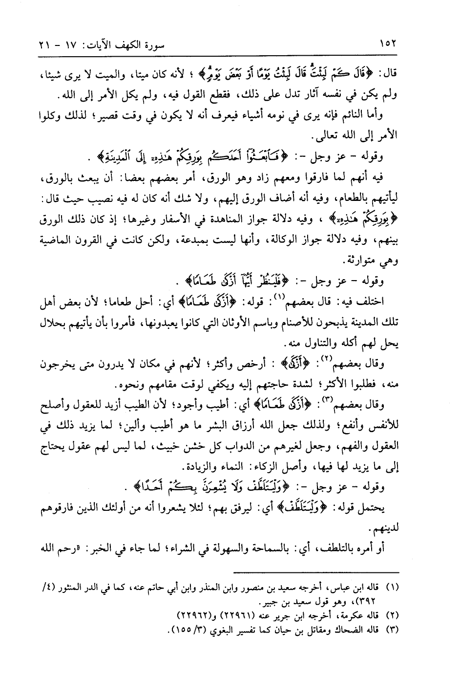 وقوله - عَزَّ وَجَلَّ -: (فَلْيَنْظُرْ أَيُّهَا أَزْكَى طَعَامًا).