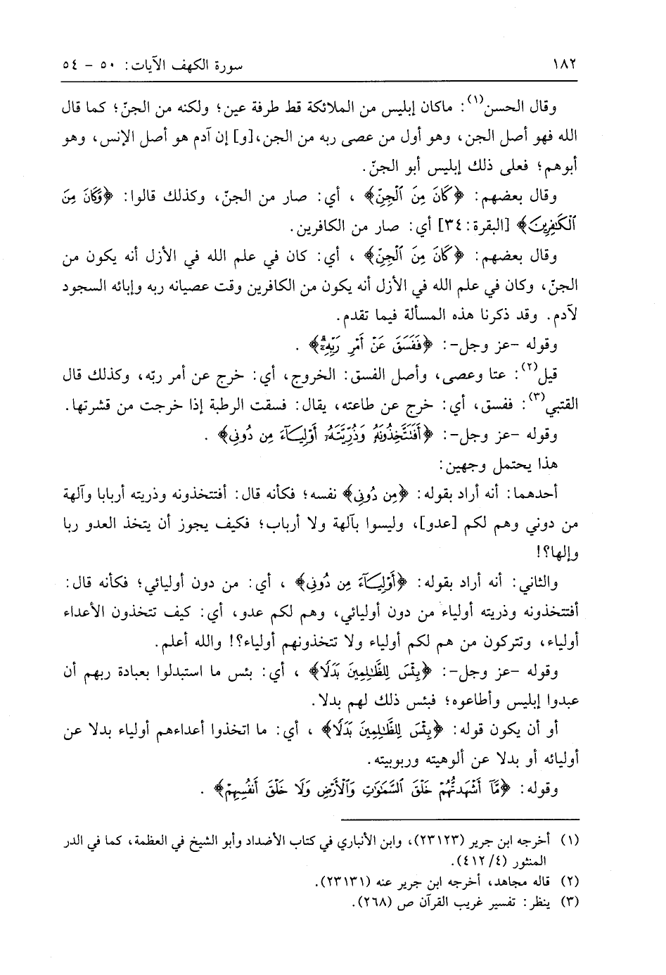 وقَالَ بَعْضُهُمْ: (كَانَ مِنَ الْجِنِّ)، أي: كان في علم اللَّه في الأزل أنه يكون من الجن، وكان في علم اللَّه في الأزل أنه يكون من الكافرين وقت عصيانه ربه وإبائه السجود لآدم. وقد ذكرنا هذه المسألة فيما تقدم.