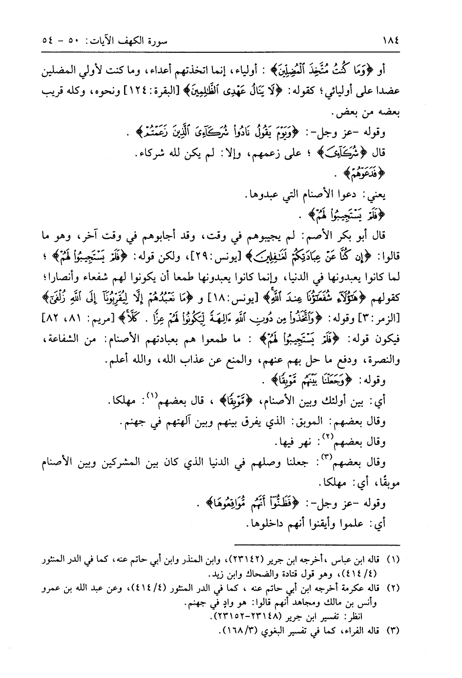 وقوله - عَزَّ وَجَلَّ -: (وَيَوْمَ يَقُولُ نَادُوا شُرَكَائِيَ الَّذِينَ زَعَمْتُمْ فَدَعَوْهُمْ فَلَمْ يَسْتَجِيبُوا لَهُمْ وَجَعَلْنَا بَيْنَهُمْ مَوْبِقًا (52)