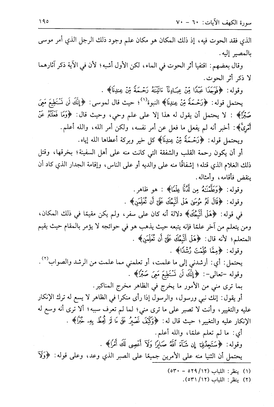 وقوله: (فَوَجَدَا عَبْدًا مِنْ عِبَادِنَا آتَيْنَاهُ رَحْمَةً مِنْ عِنْدِنَا وَعَلَّمْنَاهُ مِنْ لَدُنَّا عِلْمًا (65)