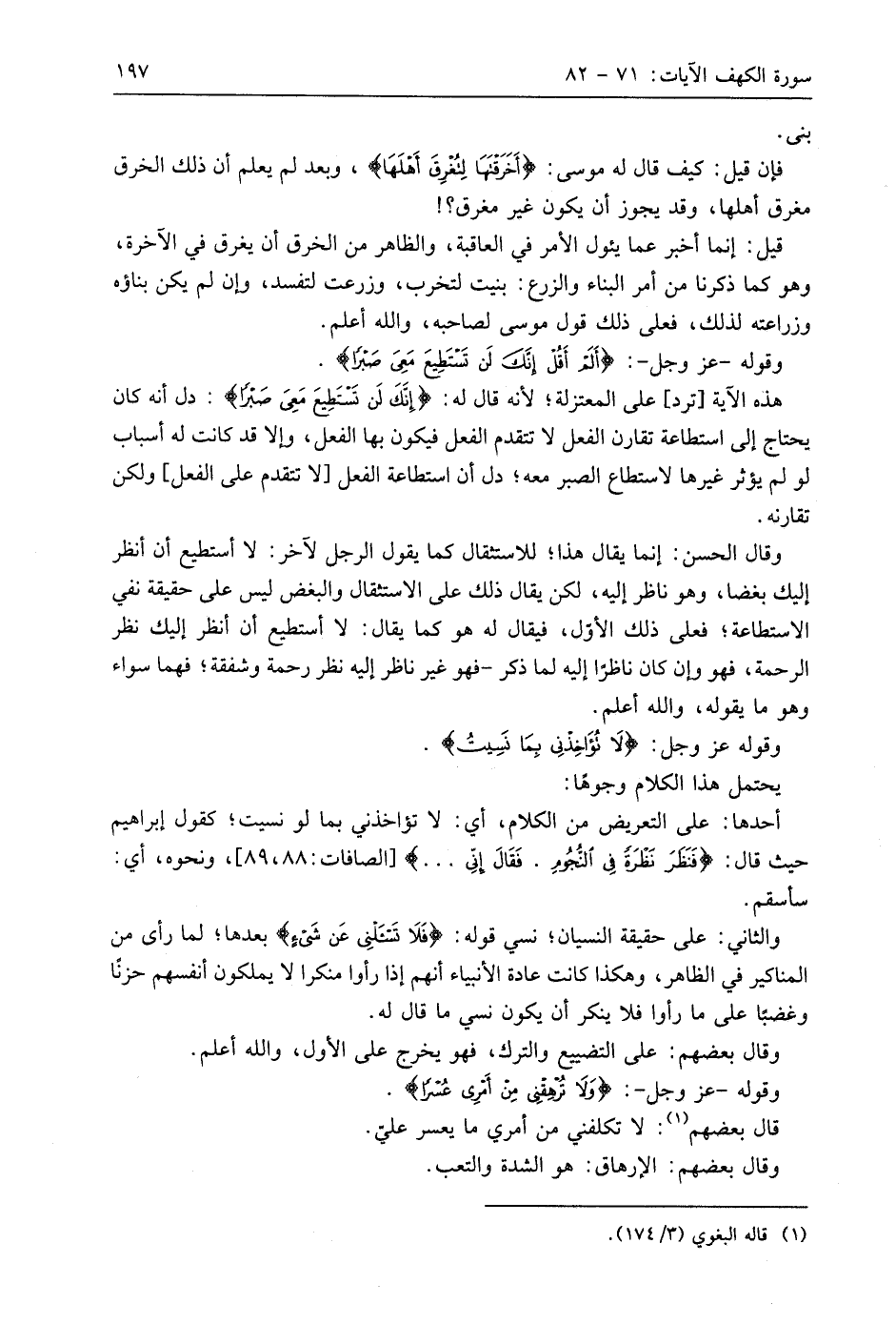 هذه الآية أترد، على المعتزلة؛ لأنه قال له: (إِنَّكَ لَنْ تَسْتَطِيعَ مَعِيَ صَبْرًا): دل أنه كان يحتاج إلى استطاعة تقارن الفعل لا تتقدم الفعل فيكون بها الفعل، وإلا قد كانت له أسباب لو لم يؤثر غيرها لاستطاع الصبر معه؛ دل أن استطاعة الفعل لا تتقدم على الفعل، ولكن تقارنه.