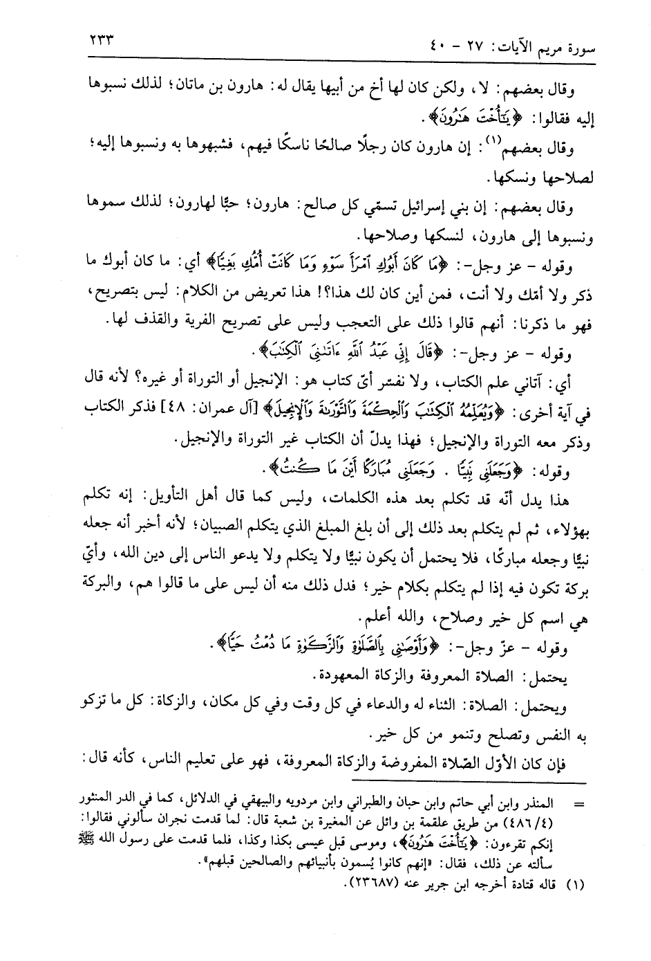 وقَالَ بَعْضُهُمْ: إن بني إسرائيل تسمي كل صالح: هارون؛ حبًّا لهارون؛ لذلك سموها ونسبوها إلى هارون، لنسكها وصلاحها.