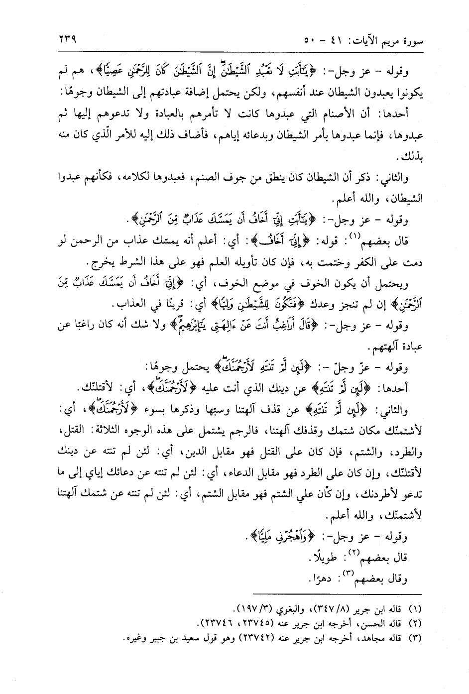وقوله - عَزَّ وَجَلَّ -: (يَا أَبَتِ لَا تَعْبُدِ الشَّيْطَانَ إِنَّ الشَّيْطَانَ كَانَ لِلرَّحْمَنِ عَصِيًّا (44) هم لم يكونوا يعبدون الشيطان عند أنفسهم، ولكن يحتمل إضافة عبادتهم إلى الشيطان وجوهًا: