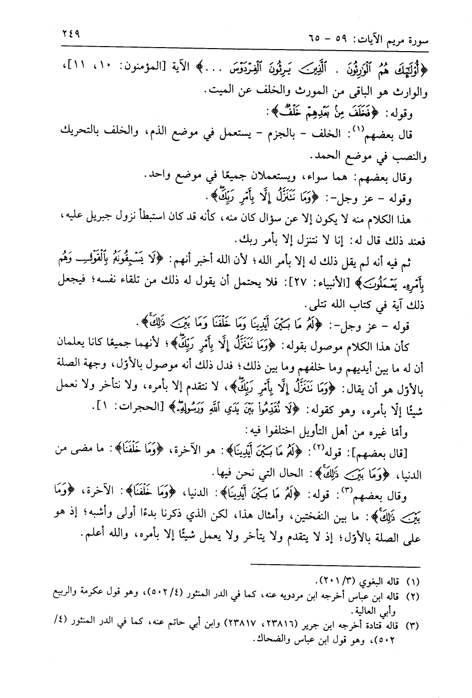 وقوله - عَزَّ وَجَلَّ -: (وَمَا نَتَنَزَّلُ إِلَّا بِأَمْرِ رَبِّكَ لَهُ مَا بَيْنَ أَيْدِينَا وَمَا خَلْفَنَا وَمَا بَيْنَ ذَلِكَ وَمَا كَانَ رَبُّكَ نَسِيًّا (64)