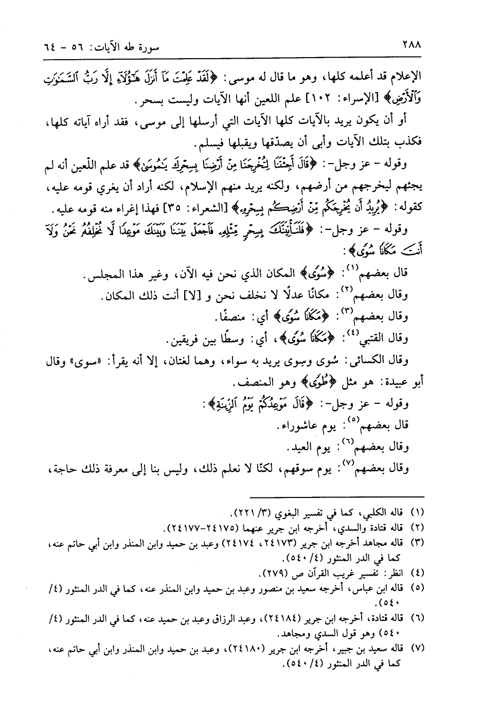 وقوله - عَزَّ وَجَلَّ -: (فَلَنَأْتِيَنَّكَ بِسِحْرٍ مِثْلِهِ فَاجْعَلْ بَيْنَنَا وَبَيْنَكَ مَوْعِدًا لَا نُخْلِفُهُ نَحْنُ وَلَا أَنْتَ مَكَانًا سُوًى (58)