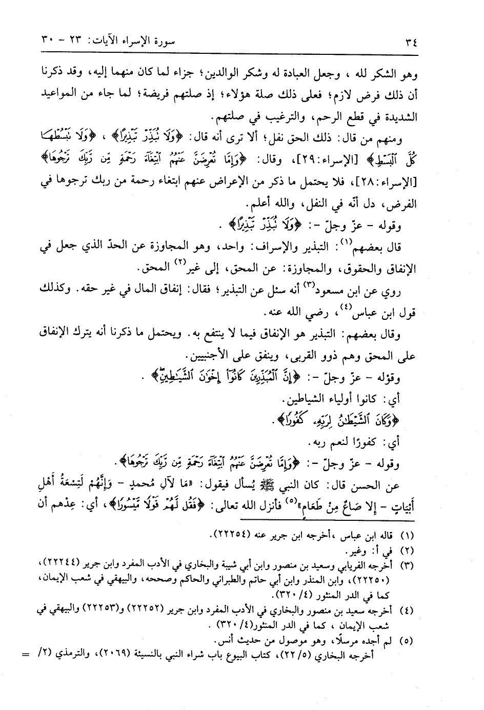 وقوله - عَزَّ وَجَلَّ -: (وَلَا تُبَذِّرْ تَبْذِيرًا).