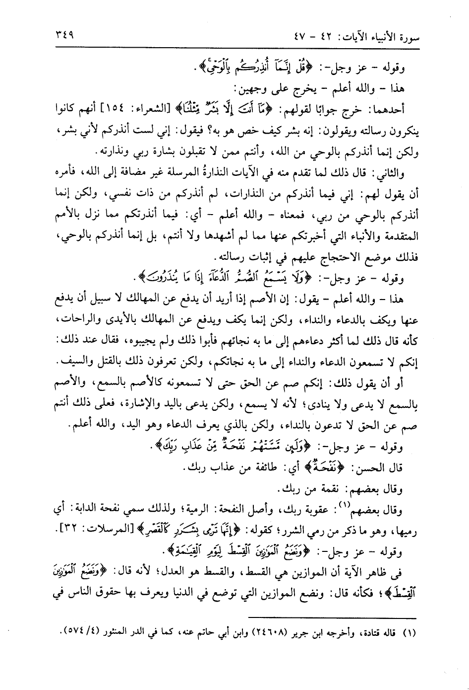 وقوله - عَزَّ وَجَلَّ -: (قُلْ إِنَّمَا أُنْذِرُكُمْ بِالْوَحْيِ ... (45)