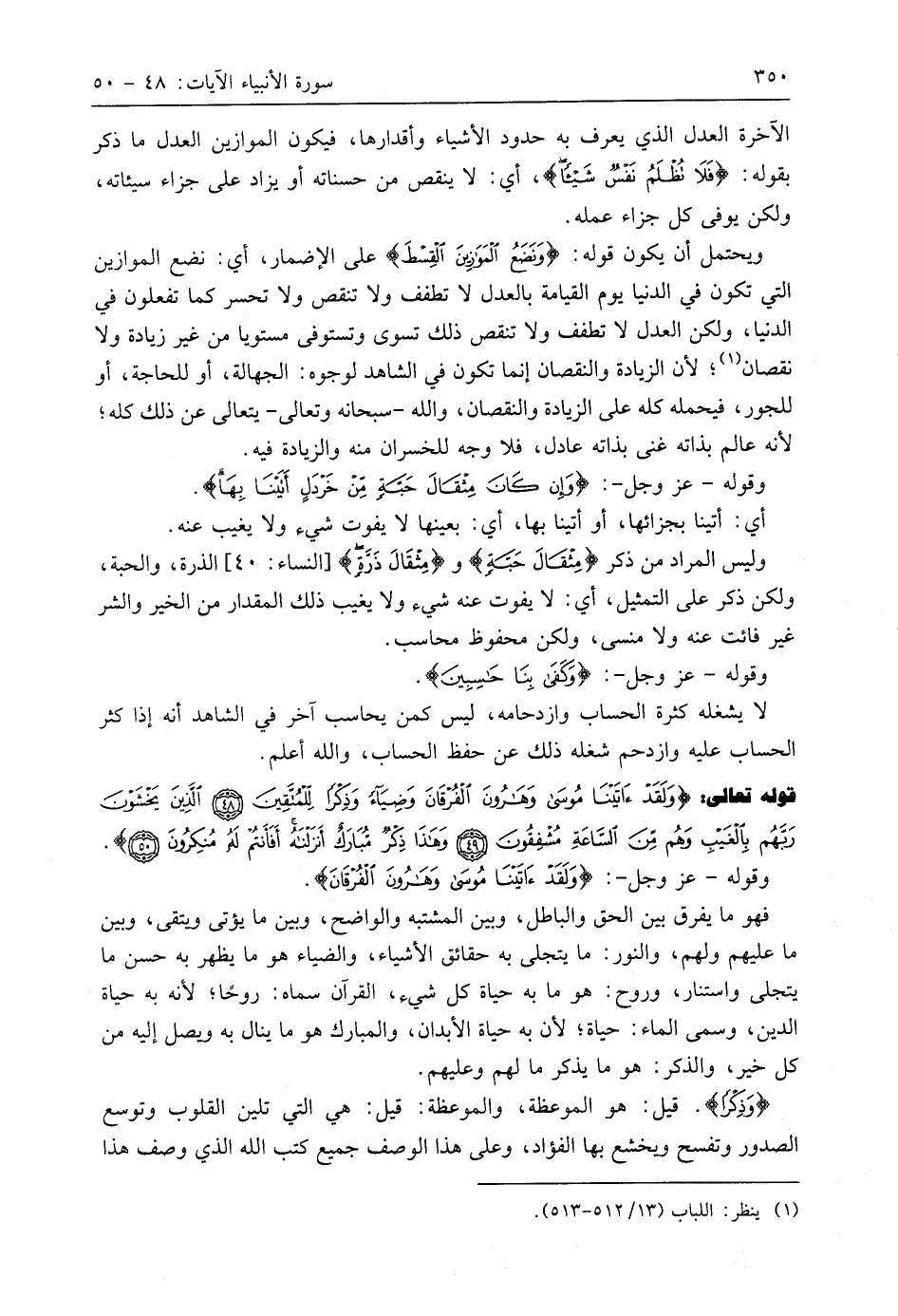 قوله تعالى: (وَلَقَدْ آتَيْنَا مُوسَى وَهَارُونَ الْفُرْقَانَ وَضِيَاءً وَذِكْرًا لِلْمُتَّقِينَ (48) الَّذِينَ يَخْشَوْنَ رَبَّهُمْ بِالْغَيْبِ وَهُمْ مِنَ السَّاعَةِ مُشْفِقُونَ (49) وَهَذَا ذِكْرٌ مُبَارَكٌ أَنْزَلْنَاهُ أَفَأَنْتُمْ لَهُ مُنْكِرُونَ (50)