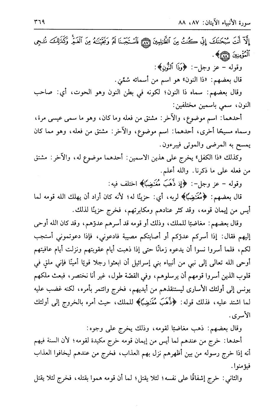وقوله - عَزَّ وَجَلَّ -: (وَذَا النُّونِ):