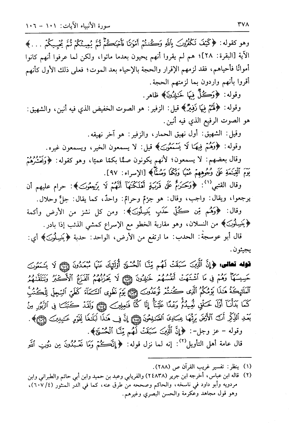 وقوله: (لَهُمْ فِيهَا زَفِيرٌ وَهُمْ فِيهَا لَا يَسْمَعُونَ (100)