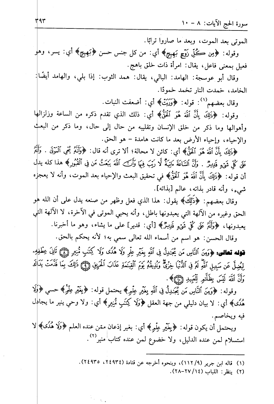 وقوله: (وَمِنَ النَّاسِ مَنْ يُجَادِلُ فِي اللَّهِ بِغَيْرِ عِلْمٍ) يحتمل قوله: (بِغَيْرِ عِلْمٍ) حسي (وَلَا هُدًى) أي: لا بيان دليلي من جهة العقل (وَلَا كِتَابٍ مُنِيرٍ) أي: ولا وحي ينير ما يجال فيه ويخاصم.