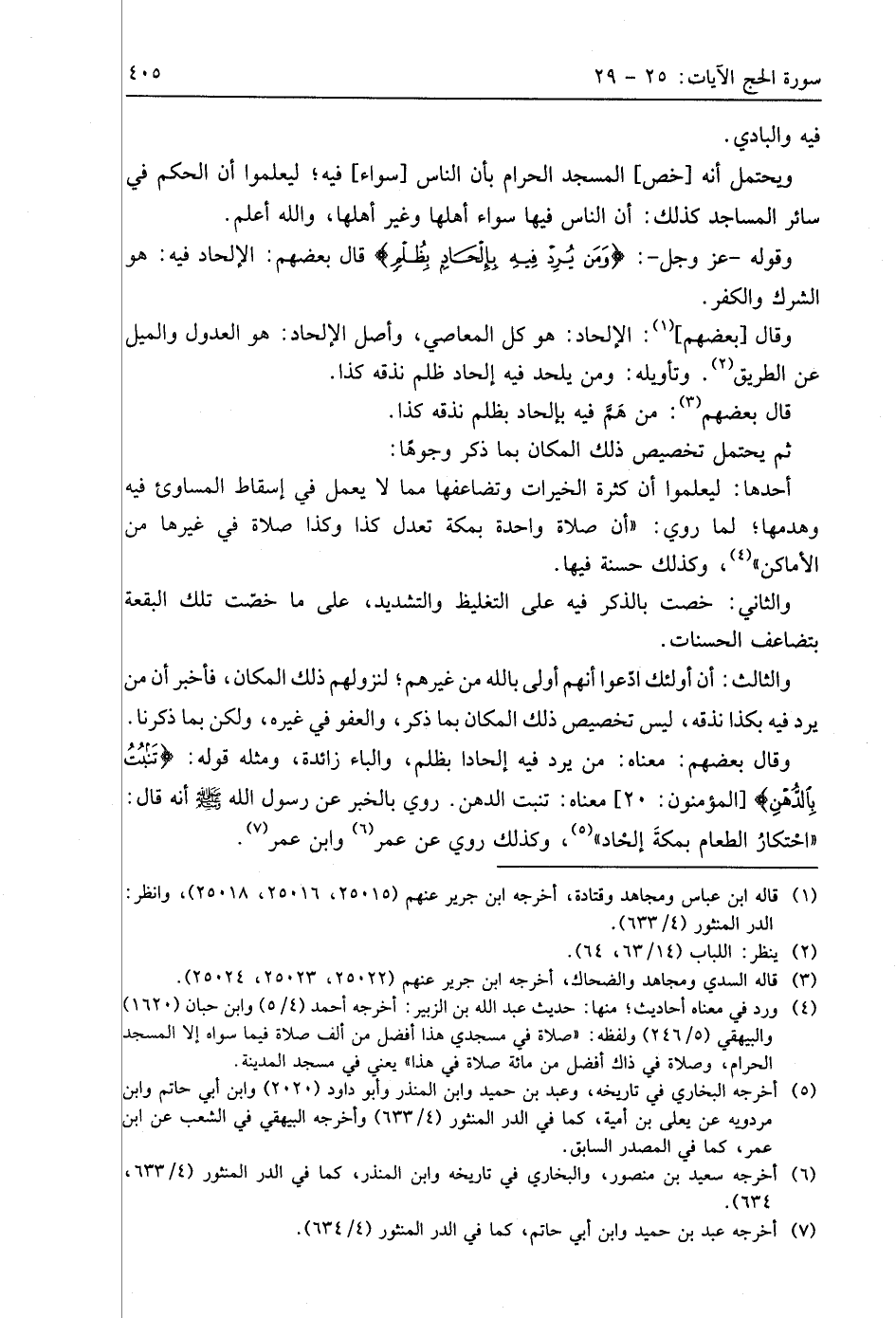 وقوله - عَزَّ وَجَلَّ -: (وَمَنْ يُرِدْ فِيهِ بِإِلْحَادٍ بِظُلْمٍ) قَالَ بَعْضُهُمْ: الإلحاد فيه: هو الشرك والكفر.