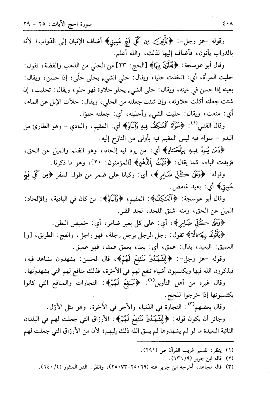 (يَأْتُوكَ رِجَالًا) تقول: رجل الرجل يرجل رجلة، فهو راجل، والفج: الطريق، والعميق: البعيد، يقال: عمق، أي: بعد، يعمق عمقا، فهو عميق.