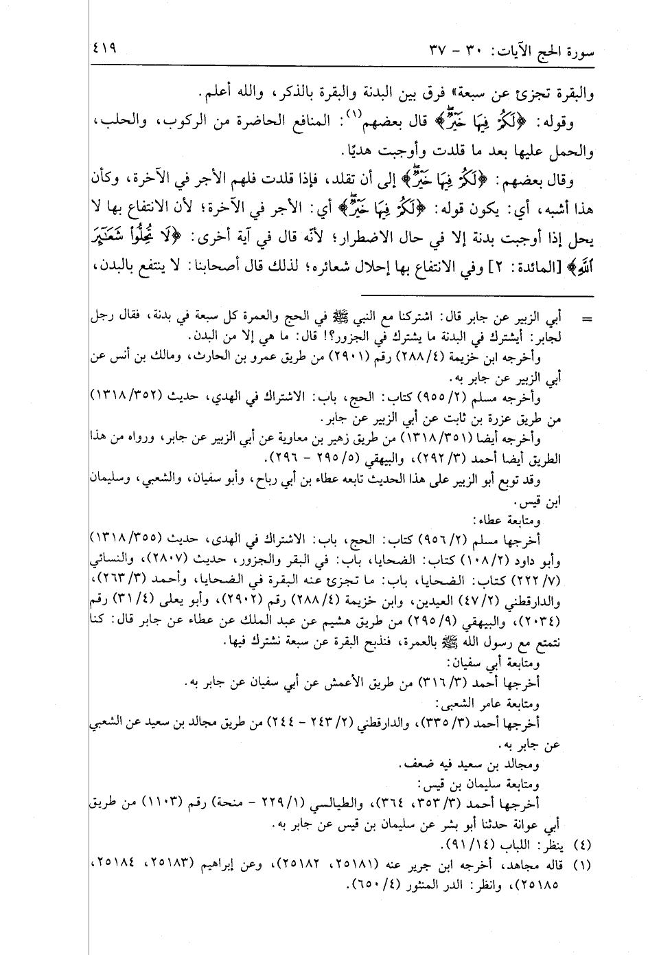 وقَالَ بَعْضُهُمْ: (لَكُمْ فِيهَا خَيْرٌ) إلى أن تقلد، فإذا قلدت فلهم الأجر في الآخرة، وكأن هذا أشبه، أي: يكون قوله: (لَكُمْ فِيهَا خَيْرٌ) أي: الأجر في الآخرة؛ لأن الانتفاع بها لا يحل إذا أوجبت بدنة إلا في حال الاضطرار؛ لأنّه قال في آية أخرى: (لَا تُحِلُّوا شَعَائِرَ اللَّهِ)، وفي الانتفاع بها إحلال شعائره؛ لذلك قال أصحابنا: لا ينتفع بالبدن،