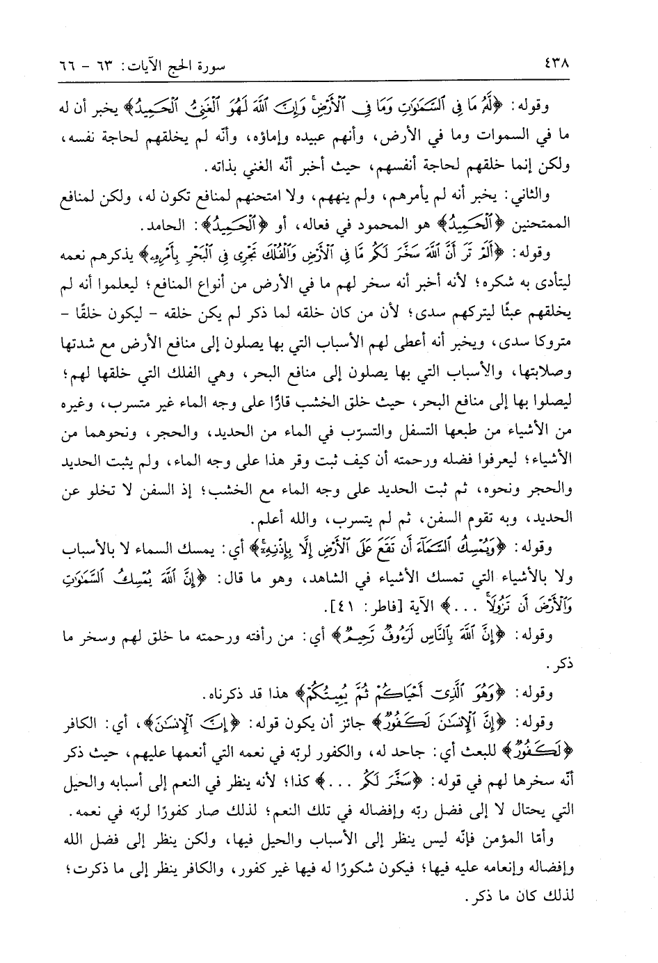 وقوله: (لَهُ مَا فِي السَّمَاوَاتِ وَمَا فِي الْأَرْضِ وَإِنَّ اللَّهَ لَهُوَ الْغَنِيُّ الْحَمِيدُ (64) ويخبر أن له ما في السماوات وما في الأرض، وأنهم عبيده وإماؤه، وأنه لم يخلقهم لحاجة نفسه، ولكن إنما خلقهم لحاجة أنفسهم، حيث أخبر أنه الغني بذاته.
