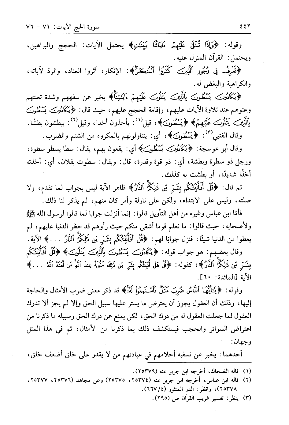 وقوله: (وَإِذَا تُتْلَى عَلَيْهِمْ آيَاتُنَا بَيِّنَاتٍ ... (72) يحتمل الآيات: الحجج والبراهين، ويحتمل: القرآن المنزل عليه.