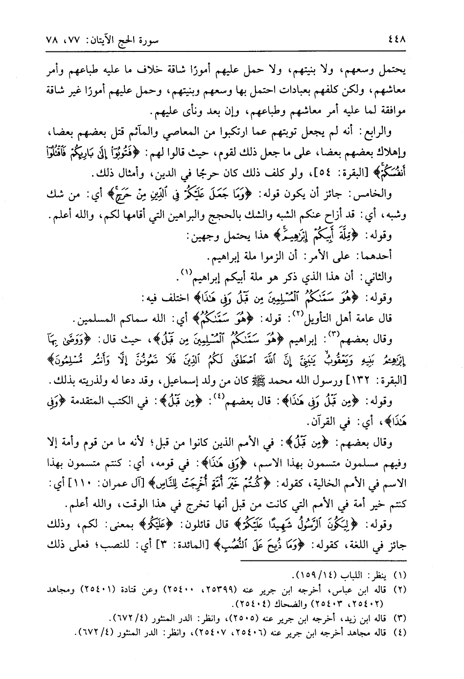 وقوله: (هُوَ سَمَّاكُمُ الْمُسْلِمِينَ مِنْ قَبْلُ وَفِي هَذَا) اختلف فيه:
