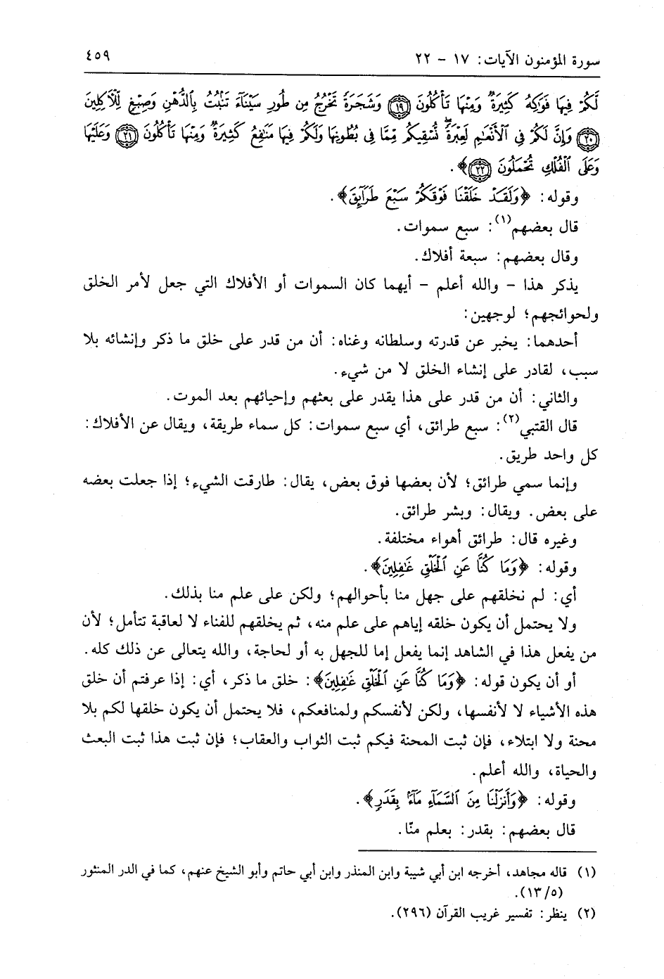 وقوله: (وَلَقَدْ خَلَقْنَا فَوْقَكُمْ سَبْعَ طَرَائِقَ ... (17)