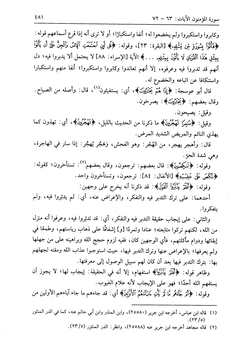 وقيل: (سَامِرًا تَهْجُرُونَ) ما ذكرنا من الحديث بالليل، (تَهْجُرُونَ)، أي: تهذون كما يهذي النائم والمريض الشديد المرض.