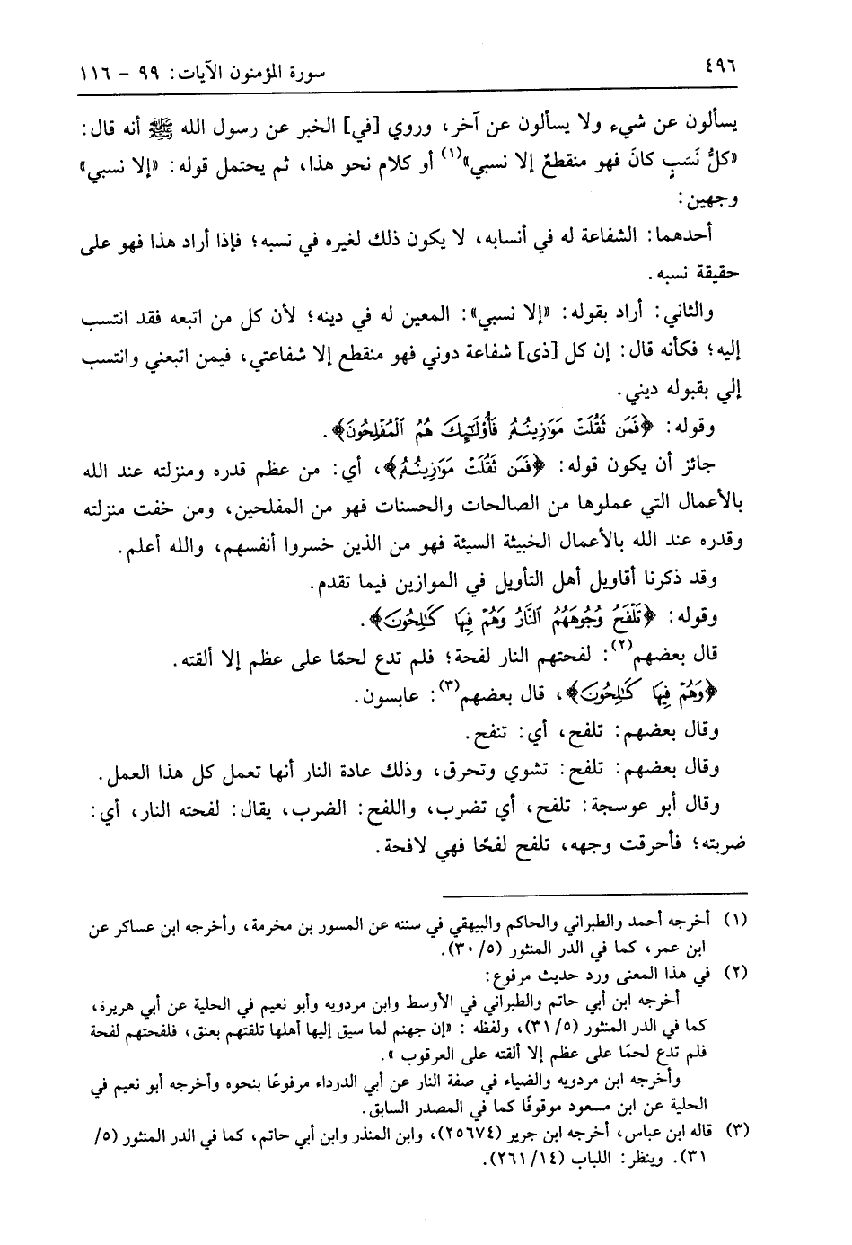 وقوله: (فَمَنْ ثَقُلَتْ مَوَازِينُهُ فَأُولَئِكَ هُمُ الْمُفْلِحُونَ (102)