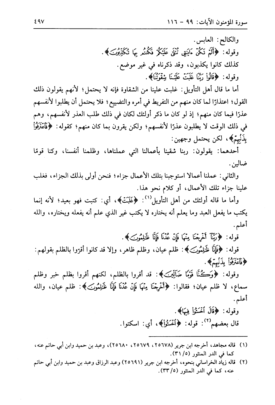 أما ما قال أهل التأويل: غلبت علينا من الشقاوة فإنه لا يحتمل؛ لأنهم يقولون ذلك القول؛ اعتذارًا لما كان منهم من التفريط في أمره والتضييع؛ فلا يحتمل أن يطلبوا لأنفسهم عذرا فيما كان منهم؛ إذ لو كان ما ذكر أُولَئِكَ لكان في ذلك طلب العذر لأنفسهم، وهم في ذلك الوقت لا يطلبون عذرا لأنفسهم؛ ولكن يقرون بما كان منهم؛ كقوله: (فَاعْتَرَفُوا بِذَنْبِهِمْ)، لكن يحتمل وجهين: