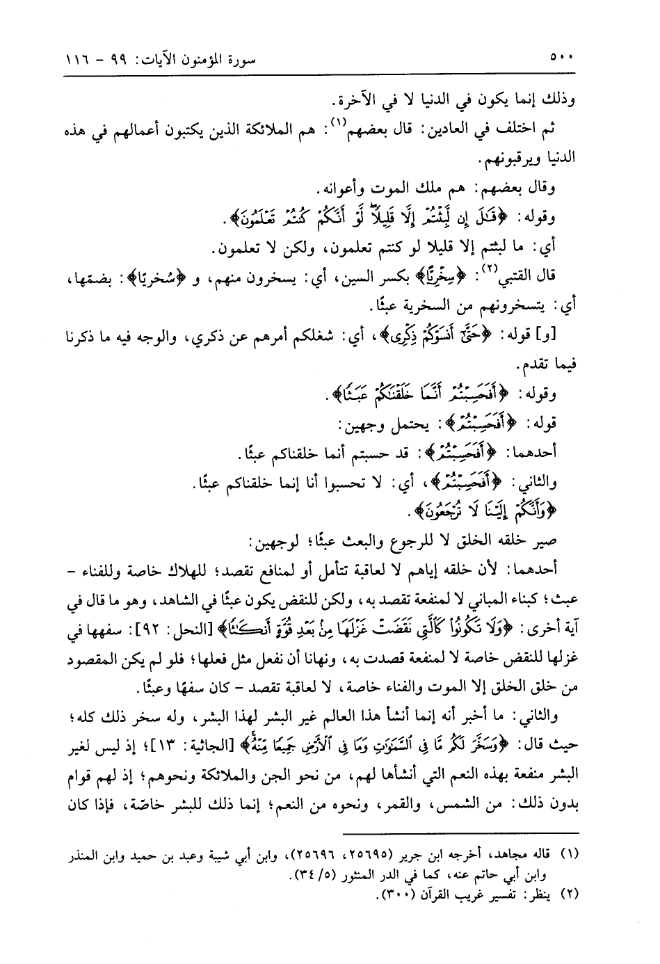 وقوله: (أَفَحَسِبْتُمْ أَنَّمَا خَلَقْنَاكُمْ عَبَثًا وَأَنَّكُمْ إِلَيْنَا لَا تُرْجَعُونَ (115)