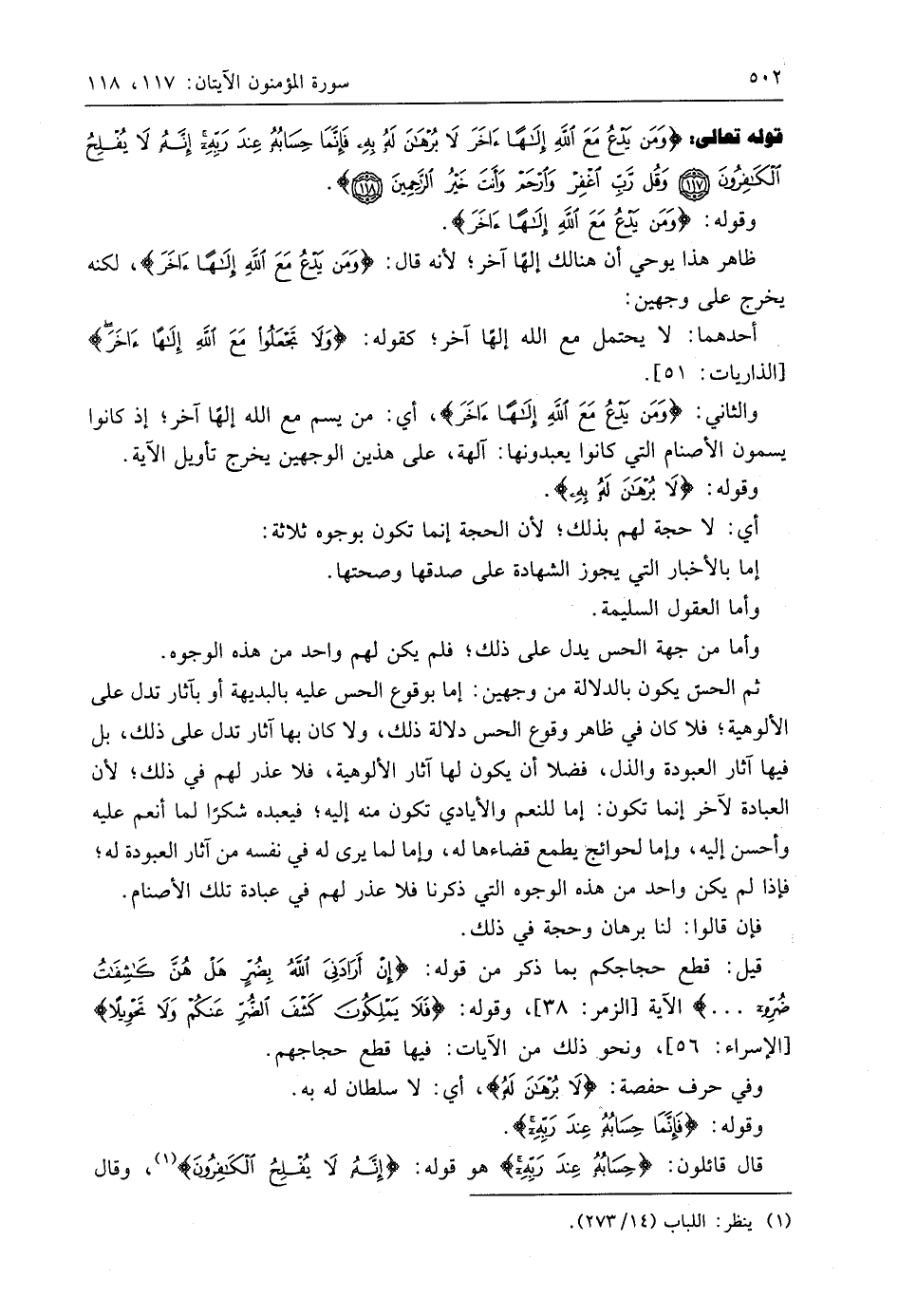 قوله تعالى: (وَمَنْ يَدْعُ مَعَ اللَّهِ إِلَهًا آخَرَ لَا بُرْهَانَ لَهُ بِهِ فَإِنَّمَا حِسَابُهُ عِنْدَ رَبِّهِ إِنَّهُ لَا يُفْلِحُ الْكَافِرُونَ (117) وَقُلْ رَبِّ اغْفِرْ وَارْحَمْ وَأَنْتَ خَيْرُ الرَّاحِمِينَ (118)