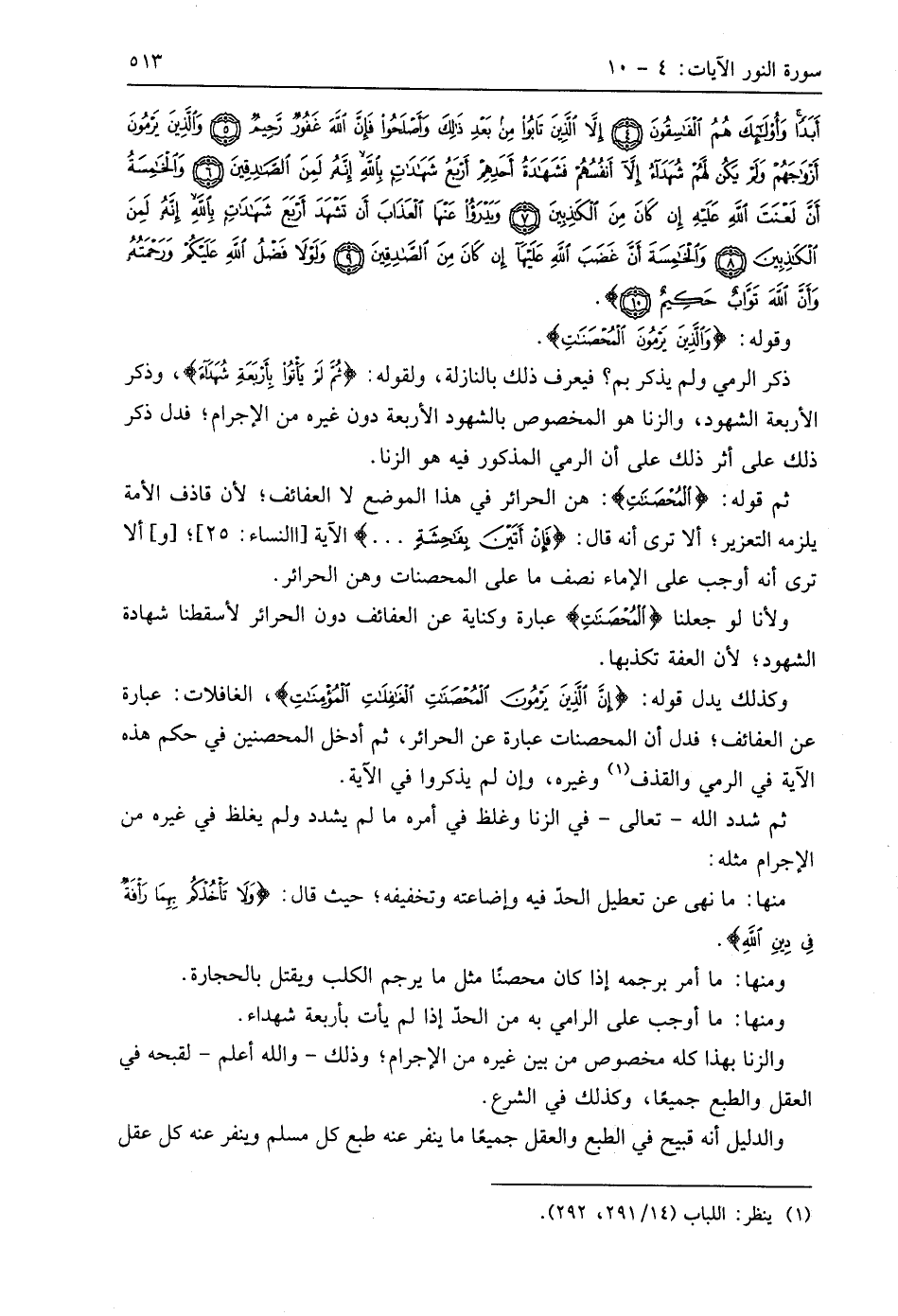 أَبَدًا وَأُولَئِكَ هُمُ الْفَاسِقُونَ (4) إِلَّا الَّذِينَ تَابُوا مِنْ بَعْدِ ذَلِكَ وَأَصْلَحُوا فَإِنَّ اللَّهَ غَفُورٌ رَحِيمٌ (5) وَالَّذِينَ يَرْمُونَ أَزْوَاجَهُمْ وَلَمْ يَكُنْ لَهُمْ شُهَدَاءُ إِلَّا أَنْفُسُهُمْ فَشَهَادَةُ أَحَدِهِمْ أَرْبَعُ شَهَادَاتٍ بِاللَّهِ إِنَّهُ لَمِنَ الصَّادِقِينَ (6) وَالْخَامِسَةُ أَنَّ لَعْنَتَ اللَّهِ عَلَيْهِ إِنْ كَانَ مِنَ الْكَاذِبِينَ (7) وَيَدْرَأُ عَنْهَا الْعَذَابَ أَنْ تَشْهَدَ أَرْبَعَ شَهَادَاتٍ بِاللَّهِ إِنَّهُ لَمِنَ الْكَاذِبِينَ (8) وَالْخَامِسَةَ أَنَّ غَضَبَ اللَّهِ عَلَيْهَا إِنْ كَانَ مِنَ الصَّادِقِينَ (9) وَلَوْلَا فَضْلُ اللَّهِ عَلَيْكُمْ وَرَحْمَتُهُ وَأَنَّ اللَّهَ تَوَّابٌ حَكِيمٌ (10)