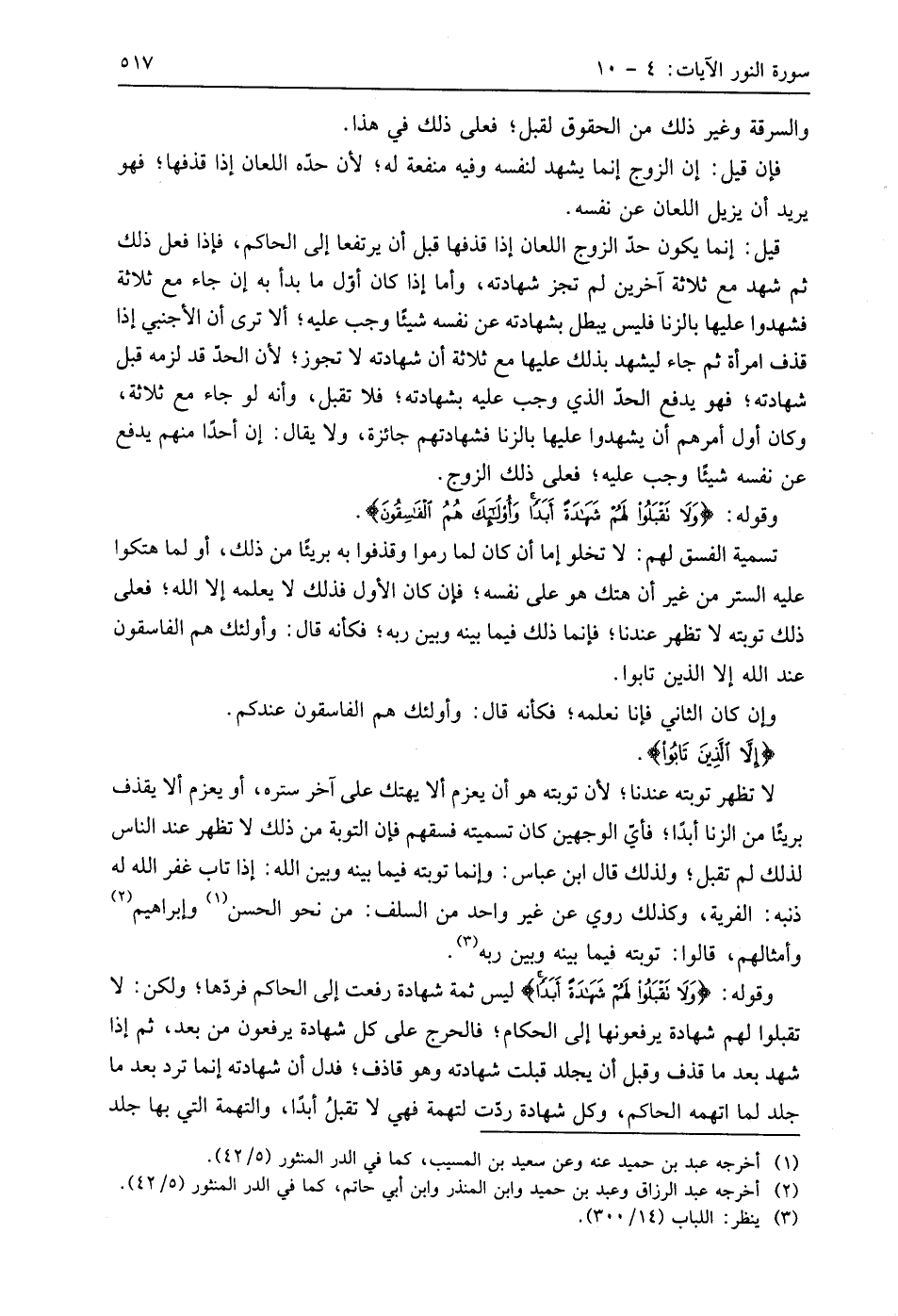 وقوله: (وَلَا تَقْبَلُوا لَهُمْ شَهَادَةً أَبَدًا) ليس ثمة شهادة رفعت إلى الحاكم فردها؛ ولكن: لا تقبلوا لهم شهادة يرفعونها إلى الحكام؛ فالحرج على كل شهادة يرفعون من بعد، ثم إذا شهد بعد ما قذف وقبل أن يجلد قبلت شهادته وهو قاذف؛ فدل أن شهادته إنما ترد بعد ما جلد لما اتهمه الحاكم، وكل شهادة ردت لتهمة فهي لا تقبلُ أبدًا، والتهمة التي بها جلد