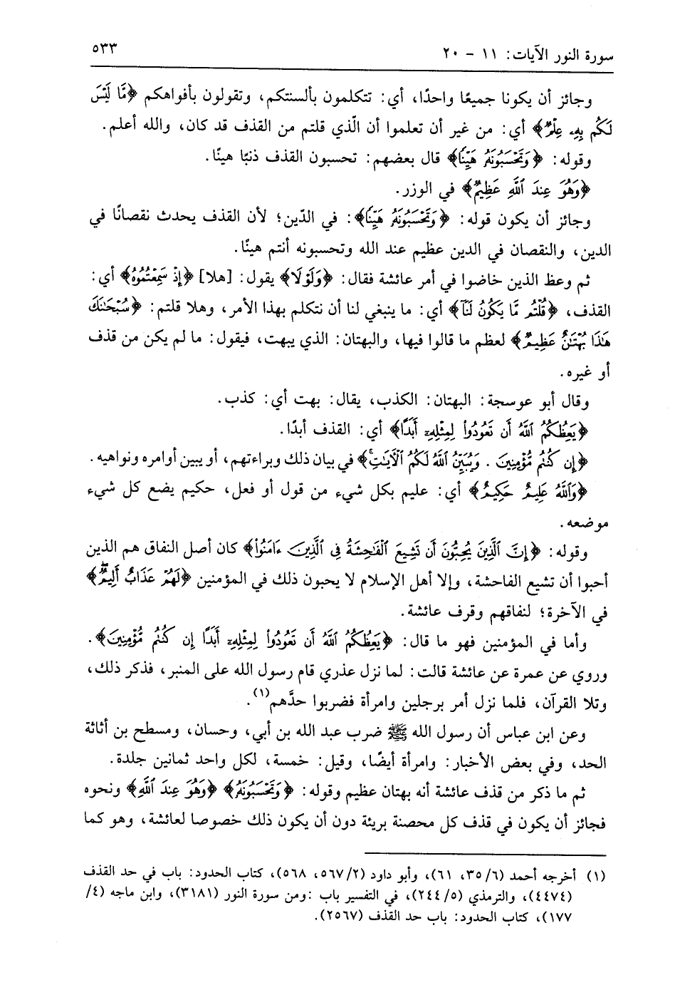 وعن ابن عَبَّاسٍ أن رسول اللَّه - صَلَّى اللَّهُ عَلَيهِ وَسَلَّمَ - ضرب عبد اللَّه بن أبي، وحسان، ومسطح بن أثاثة الحد، وفي بعض الأخبار: وامرأة أيضا، وقيل: خمسة، لكل واحد ثمانين جلدة.