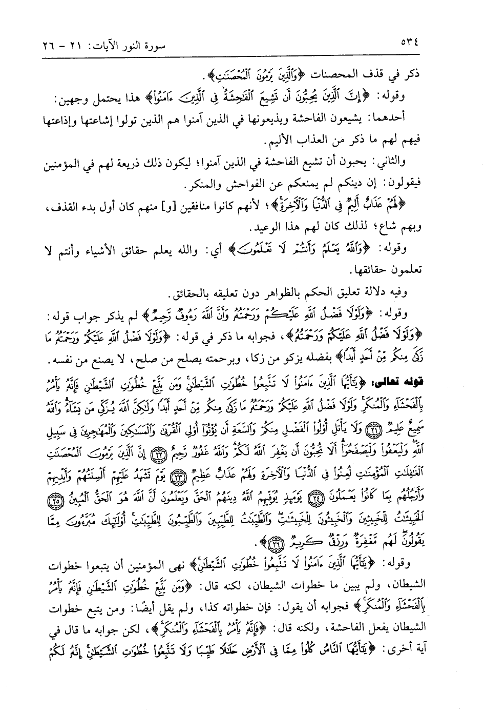 وقوله: (وَلَوْلَا فَضْلُ اللَّهِ عَلَيْكُمْ وَرَحْمَتُهُ وَأَنَّ اللَّهَ رَءُوفٌ رَحِيمٌ (20) لم يذكر جواب قوله: (وَلَوْلَا فَضْلُ اللَّهِ عَلَيْكُمْ وَرَحْمَتُهُ)، فجوابه ما ذكر في قوله: (وَلَوْلَا فَضْلُ اللَّهِ عَلَيْكُمْ وَرَحْمَتُهُ مَا زَكَى مِنْكُمْ مِنْ أَحَدٍ أَبَدًا) أن بفضله يزكو من زكا، وبرحمته يصلح من صلح، لا يصنع من نفسه.